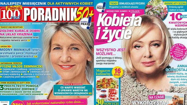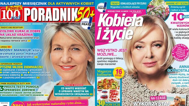 Mimo to „Poradnik 50+” awansował na pozycję lidera, ponieważ wynik „Kobiety i Życia” (Wydawnictwo Bauer) zmalał jeszcze mocniej - o 11,87 proc. do 123 902 egz. Za to kolejne trzy tytuły osiągnęły wzrosty: „Świat Kobiety” (Wydawnictwo Bauer) o 0,4 proc. do 94 102 egz., „Cała Ty” Cała Ty o 12,5 proc. do 83 221 egz., a „Zwierciadło” (Wydawnictwo Zwierciadło) - o 1,7 proc. do 78 938 egz.