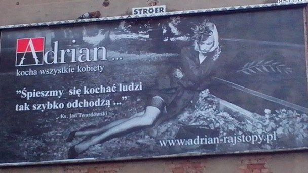 Komisja zajmowała się skargami na outdoorowe reklamy rajstop Adrian, które pojawiły się na ulicach polskich miast jesienią ub.r. Widniała na nich ubrana na czarno młoda kobieta w pończochach, oparta o nagrobek. Obok widniały dwa hasła: „Adrian kocha wszystkie kobiety” i cytat z wiersza ks. Jana Twardowskiego: „Śpieszmy się kochać ludzi, tak szybko odchodzą”.