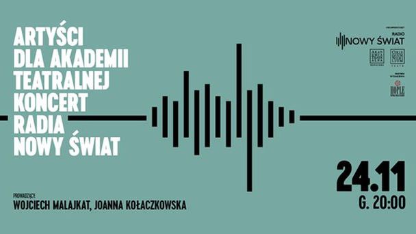 Stąd inicjatywa Radia Nowy Świat. 24 listopada br. o godzinie 20.00 rozgłośnia zaprosi na koncert „Artyści dla Akademii Teatralnej”, na scenie tejże uczelni. Dochód ze sprzedaży biletów w całości zostanie przeznaczony na dofinansowanie AT. Podczas koncertu zostanie również uruchomiona zbiórka publiczna na jej rzecz. Wydarzenie poprowadzą Joanna Kołaczkowska i Wojciech Malajkat.