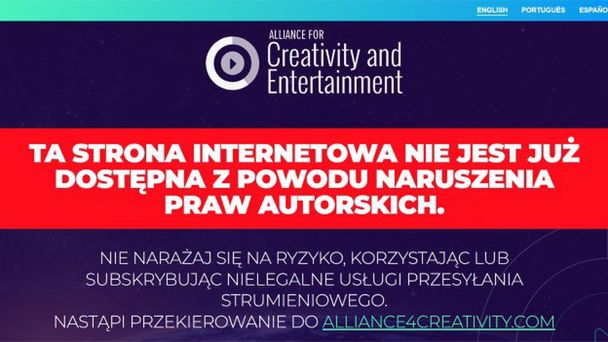 Zamiast pirackich witryn jest obecnie wyświetlana strona internetowa, która zachęca do korzystania z legalnego streamingu. Członkami ACE są m.in. Netflix, Amazon, Sony Pictures Entertainment, Paramount Global, Walt Disney Company, Warner Bros. Discovery, Apple TV+, NBCUniversal.