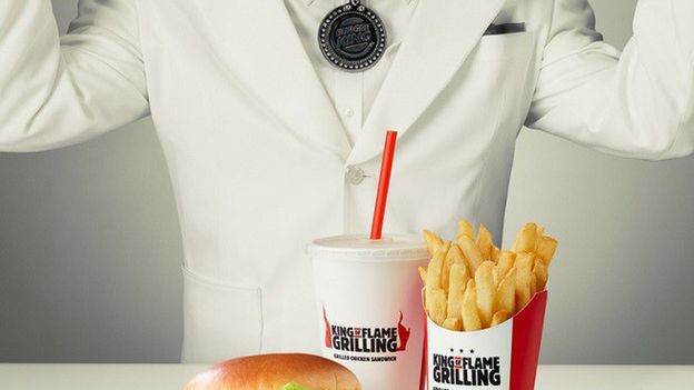 Bohaterem najnowszej kampanii Burger Kinga jest król ubrany dokładnie tak samo jak słynny i utożsamiany z marką KFC pułkownik Sanders. Ma na sobie przede wszystkim charakterystyczny biały garnitur.