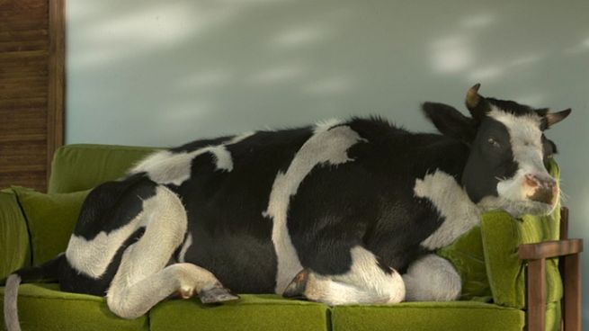Główną bohaterką reklam, jak zawsze w przypadku reklam marki Łaciate, jest krowa. Akcja toczy się na łące, a krowa wskakuje na kanapę.