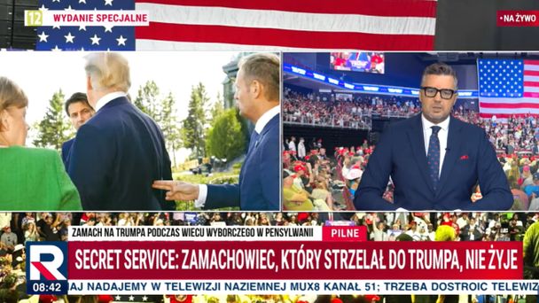 W niedzielny poranek dostępna od niedawna na MUX-8 naziemnej telewizji cyfrowej TV Republika jako tło do zamachu na Trumpa pokazała zdjęcie udostępnione przez Tuska w mediach społecznościowych w 2019 roku. Zrobiono je w czasie, kiedy obecny szef polskiego rządu był przewodniczącym Rady Europejskiej, a Trump prezydentem Stanów Zjednoczonych. – Zdjęcie symboliczne było już wtedy – mówił Rachoń.