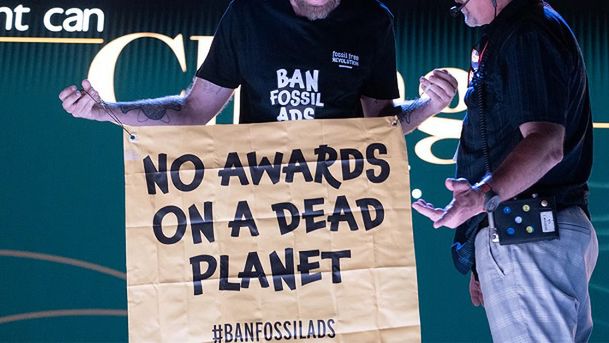 Martner, który jest byłym zwycięzcą konkursu Lions i jurorem, wszedł na scenę, wykonując wyczyn kaskaderski, podczas którego oddał nagrodę za pracę dla firmy motoryzacyjnej Volkswagen, po czym rozwinął baner z napisem: „Brak nagród na martwej planecie, zakaz reklamy paliw kopalnych!". Chciał w ten sposób przekazać kolegom z branży reklamowej prostą wiadomość: "Przestańcie tworzyć reklamy produktów, które napędzają zmiany klimatyczne. Obejmuje to firmy paliw kopalnych lub branże wysokoemisyjne (takie jak samochody i samoloty), które są od nich uzależnione".