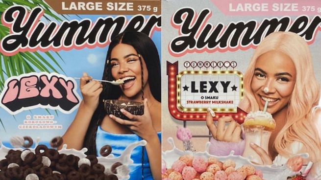 Wizerunek Lexy Chaplin znalazł się na opakowaniach dwóch nowych wariantów płatków Yummers’: czekoladowo-kokosowego i truskawkowego. W gazetce Biedronki zapowiedziano, że oba będą w sprzedaży od czwartku w cenie 11,49 zł.