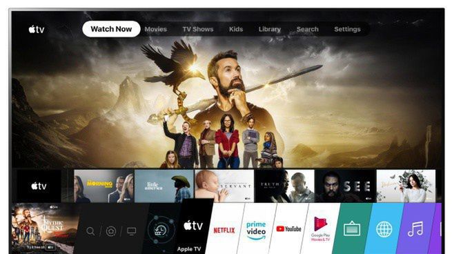 Aplikacja Apple TV jest dostępna w menu głównym i pozwala użytkownikom telewizorów LG na subskrypcję usługi streamingowej Apple TV+ oraz Apple TV Channels, umożliwiając oglądanie treści wideo w formacie Dolby Vision, m.in. oryginalnych produkcji Apple Originals, takich jak seriale „The Morning Show”, „See”, „Servant”, czy „Little America”.