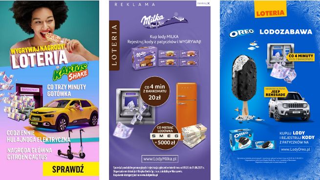 Działania reklamowe dla marki Oreo prowadzone są tylko w mediach online. We wszystkich kampaniach mocno wykorzystano media społecznościowe oraz inne formaty digitalowe, w tym kreacje angażujące na urządzeniach mobilnych. Dodatkowo marka Kaktus i Milka promowana jest na nośnikach reklamy zewnętrznej.