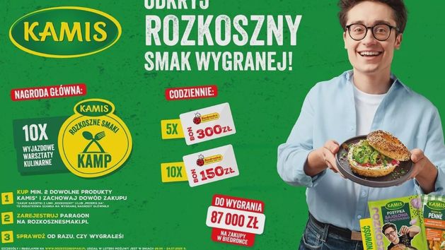 Marka Kamis uruchamia „Rozkoszne smaki”, czyli aktywację loteryjną w sieci Biedronka. Loteria ma promować wspólną linię produktów stworzoną z kulinarnym twórcą Michałem Korkoszem, znanym jako Rozkoszny.