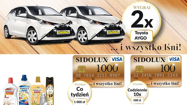 Promocja trwa od 16 października 2017 r. do 17 grudnia 2017 r. Aby wziąć udział w loterii, konsumenci muszą kupić, co najmniej jeden produkt z portfolio marek Sidolux i Perlux oraz zarejestrować na stronie promocja-sidolux.pl paragony z zakupu. Wezmą one udział w losowaniu nagród – 2 samochodów Toyota Aygo Xplay oraz nagród pieniężnych. Każdego dnia 10 osób wygra 100 zł, co tydzień jedna osoba zdobędzie 1000 zł.