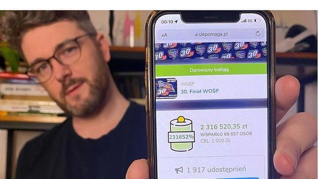 Prowadzący Make Life Harder założył eSkarbonkę dla WOŚP z celem tysiąca złotych. Jednak dzięki fanom profilu bardzo szybko kwota ta została przekroczona - w sumie o 200 tys. procent normy. O północy w skarbonce Make Life Harder było 2 316 520 złotych i 35 groszy. W ubiegłym roku influencer dzięki eSkarbonce uzbierał ponad 700 tys. zł na cele WOŚP.
