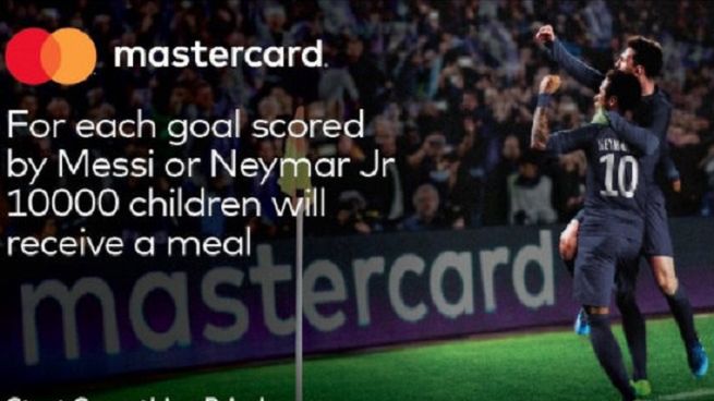 Mastercard w reklamach informował, że za każdy gol strzelony przez Lionela Messiego lub Neymara Jr ufunduje 10 tys. posiłków dla dzieci w Ameryce Łacińskiej lub na Karaibach. Akcję zaplanowano do marca 2020 roku. W zapowiadających ją materiałach Messi powiedział, że jest dumny z tego, że jest częścią tak szlachetnego projektu, zaś Neymar Jr przyznał, że jest szczęśliwy z powodu tego, że będzie mógł przyczynić się do tego, by potrzebujące dzieci miały co jeść.