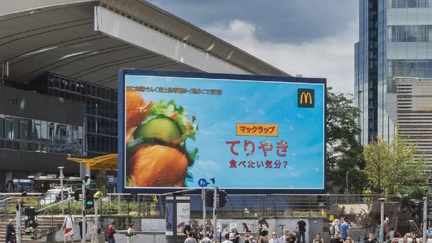 Na nośniku zlokalizowanym przy ul. Emilii Plater pomiędzy Dworcem Centralnym a centrum handlowym Złote Tarasy emitowany był spot promujący nowość w ofercie McDonald’s, czyli limitowany McWrap Teriyaki. Uwagę przechodniów przyciągnęła kreacja reklamowa zrealizowana w dwóch językach, polskim oraz japońskim, będąca elementem platformy komunikacyjnej „Mam Smaka na Maka”.