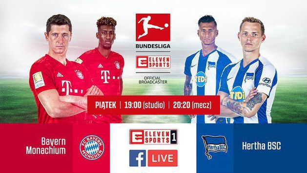 Transmisja na Facebooku Eleven Sports wystartuje o godz. 19.00 wraz z początkiem studia meczowego, a o 20.30 fani profilu stacji będą mogli w całości obejrzeć starcie Bayernu Monachium (weźmie w nim udział Robert Lewandowski) z Herthą. Transmisja będzie dostępna również w przekazie telewizyjnym na antenie Eleven Sports 1.