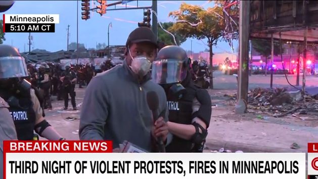 W piątek rano tamtejszego czasu Omar Jimenez prowadził relację na żywo, stojąc za szpalerem policjantów. Kiedy jedna osoba przecisnęła się przez ten szpaler i policjanci pobiegli za nią, reporter z operatorem też ruszyli w tamtą stronę.