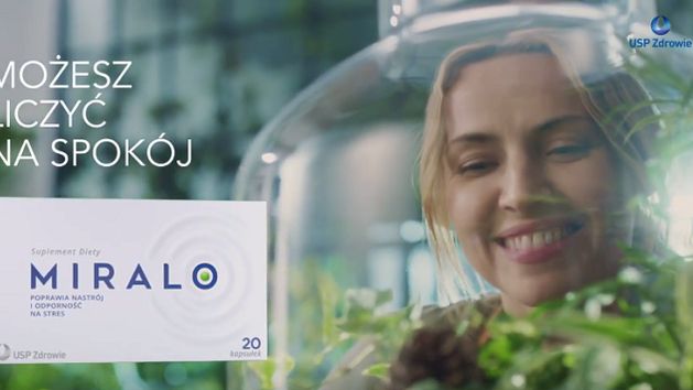 Spot reklamujący Miralo pokazuje pełen stresowych dzień z życia kobiety, której pomaga promowany suplement diety. Reklama podkreśla, że produkt zawiera ekstrakty roślinne o działaniu potwierdzonym naukowo, dzięki czemu poprawia nastrój i odporność na stres.