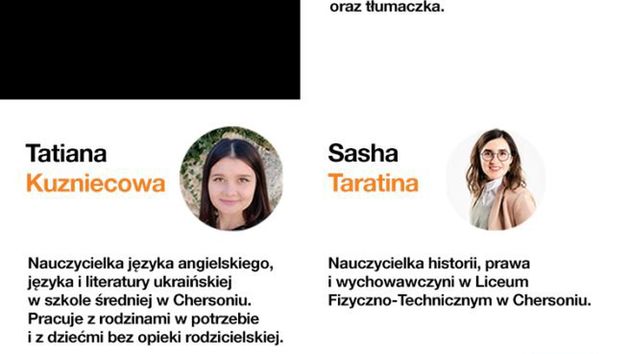 Wszystkie członkinie zespołu zaangażowane są także w prowadzenie zajęć edukacyjnych dla dzieci i młodzieży przebywających w ośrodkach szkoleniowych, które Orange Polska udostępnił osobom uciekającym przed wojną w Ukrainie. Tylko w ośrodku w Serocku pod Warszawą, goszczą w tej chwili 322 osoby, w tym 149 dzieci. Dzięki współpracy z władzami Warszawy, Serocka i partnerami zapewnione są tu m.in. lekcje i animacje dla dzieci i młodzieży czy nauka języka polskiego. - Zależy nam, aby działając na rzecz przyjaciół z Ukrainy wsłuchiwać się w ich głos i potrzeby. W Fundacji Orange zajmujemy się edukacją i wiemy, jak istotne jest konsultowanie naszych założeń i pomysłów z tymi, których będą dotyczyć. Mamy też po prostu potrzebę integracji z osobami uciekającymi ze swojej ojczyzny z powodu wojny - mówi Konrad Ciesiołkiewicz, prezes Fundacji Orange.