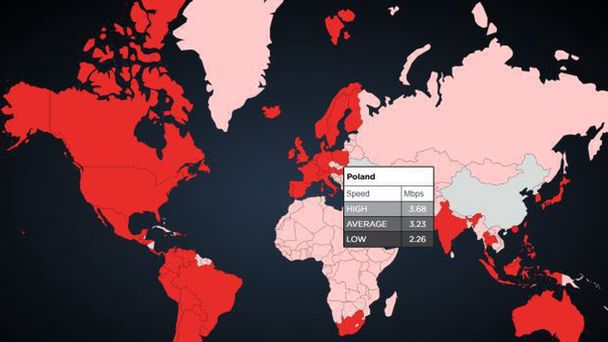 Nasz kraj ze średnią prędkością połączenia z Netflixem na poziomie 3,23 Mb/s znalazł się na 30.miejscu zestawienia przegrywając w Europie m.in. ze Szwajcarią (4,28 Mb/s), Belgią (4,09 Mb/s) oraz Holandią (3,99 Mb/s).