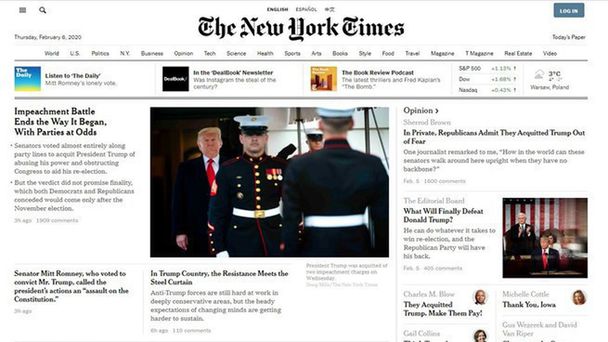 Mark Thompson, prezes New York Times Company, powiedział w czwartek, że "rok 2019 był "rekordowym rokiem cyfrowego wzrostu dziennika". - To był najlepszy rok od czasu, jak spółka wprowadziła subskrypcje cyfrowe prawie dziewięć lat temu. Ten sukces jest efektem niezwykłej pracy dziennikarz "NYT" na całym świecie, a także radykalnych zmian, jakie wprowadziliśmy w działalności cyfrowej - podkreślił Thompson.