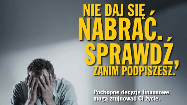 - Tymczasem, aby uniknąć negatywnych konsekwencji nierozważnych decyzji finansowych, wystarczy zastosować cztery proste zasady. Powinniśmy zacząć od sprawdzenia wiarygodności firmy pożyczkowej, z której chcemy skorzystać. Następnie powinniśmy policzyć całkowity koszt pożyczki, uwzględniający wszelkie dodatkowe opłaty. Trzecia zasada jest szczególnie często zaniedbywana - chodzi o dokładne przeczytanie umowy, czego wiele osób po prostu nie robi. Jeśli nie rozumiemy postanowień w niej zawartych, nie powinniśmy jej podpisywać - opisuje Anna Janowska z UOKiK-u. - Kampania w nowej odsłonie kładzie szczególny nacisk na tragiczne skutki nieprzemyślanych decyzji finansowych. Pokazuje to obrazowo spot telewizyjny oparty na prawdziwej historii, będący elementem kampanii. Chcemy ostrzec potencjalnych klientów firm pożyczkowych przed zbyt pochopnym zadłużaniem się i uświadomić jakie mogą być konsekwencje ich decyzji, a osobom zadłużonym pomóc w znalezieniu wyjścia z trudnej sytuacji - dodaje Marcin Kaszuba z NBP.