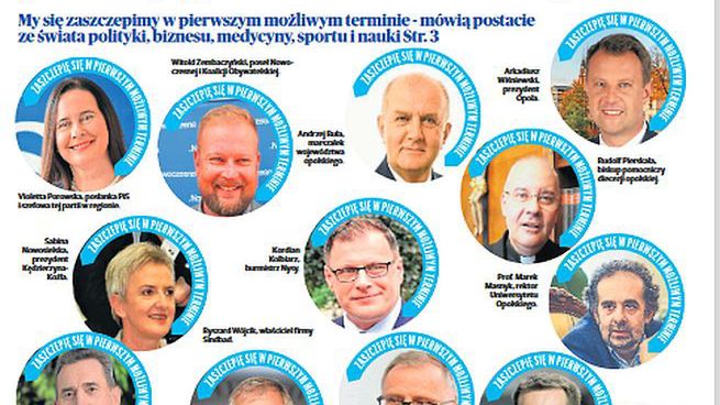 Wtorkowa jedynka gazety składa się ze zdjęć profilowych znanych i wpływowych opolan z nakładkami informującymi o woli możliwie szybkiego zaszczepienia się przeciwko Covid. - Zależało nam na tym, by jak najwięcej opolskich autorytetów promowało program szczepień i aby robili to ponad politycznymi podziałami - komentuje Krzysztof Zyzik, redaktor naczelny nto.