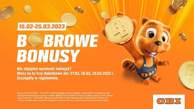 W komunikacji brand hero– bóbr – zachęca do wzięcia udziału w promocji przygotowanej przez sieć OBI. Głosu bobrowi użyczył popularny aktor dubbingowy Jarosław Boberek.