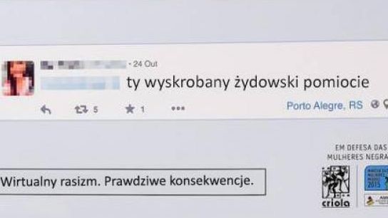 Na ulicach części miast w Brazylii niedawno pojawiły się billboardy, na których wydrukowano rasistowskie komentarze zamieszczane na Twitterze i Facebooku. Zdjęcia oraz imiona i nazwiska ich autorów wypikselowano. W ten sposób brazylijska organizacja Criola, walcząca o prawa człowieka, chce ośmieszyć internetowych rasistów.