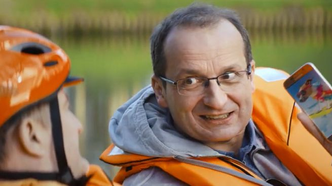 W spocie Robert Górski, siedząc na rowerze wodnym, przekonuje Mikołaja Cieślaka, żeby przesiadł się do niego z roweru górskiego.