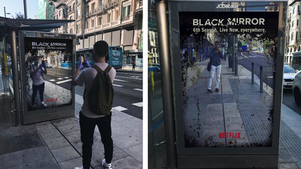 Tamtejsi studenci zamieścili na przystanku komunikacji miejskiej zwierciadło z podpisem „Żyjemy w Czarnym Lustrze”. Dzięki temu twórcy pokazali, że rzeczywistość, w jakiej przyszło nam obecnie żyć, jest jeszcze bardziej tajemnicza, a wręcz przerażająca bardziej niż serialowa fabuła. "6 sezon. Teraz. Na żywo. Wszędzie" - czytamy na plakacie.