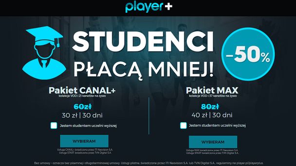 W ofercie specjalnej studenci mogą kupić pakiety Canal+ i Max za połowę ceny: odpowiednio za 30 zł i 40 zł. Promocja kierowana jest do użytkowników w wieku 19-24 lata.
