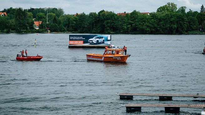 Od trzech dni na mazurskich jeziorach można zobaczyć platformy, na których umieszczony jest duży billboard z reklamą Toyoty Rav4. To on rzuca się przede wszystkim w oczy.
