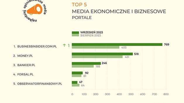 Od ponad roku ekonomiczny serwis NBP cały czas znajduje się w TOP 5 portali branżowego rankingu IMM, a sumaryczne statystyki cytowalności treści publikowanych w tym okresie w serwisie zbliżyły się do tysiąca. Jak wynika z raportu IMM „Analiza obecności w mediach” (grudzień 2022 r. – czerwiec 2023 r.) , najchętniej do tekstów „Obserwatora Finansowego” sięgają inne portale, często specjalistyczne.