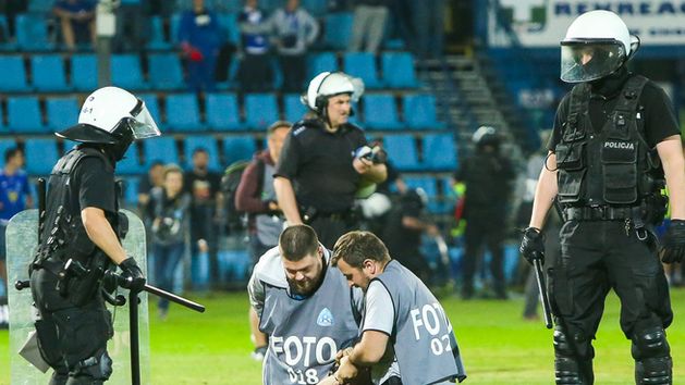 - Można zadać pytanie, co wydarzyłoby się, gdyby nie było tam policjantów monitorujących mecz? - zapytała Komenda Główna Policji. - Realne było zagrożenie zdrowia i życia zawodników, pracowników klubu i przypadkowych osób oraz uczestników tego spotkania oraz uszkodzenia mienia. Reakcja policjantów, na prośbę ochrony organizatora, która nie potrafiła swoimi siłami przywrócić porządku, zapobiegła groźnym skutkom działań agresywnych chuliganów. Głównym zadaniem funkcjonariuszy monitorujących mecz jest obserwacja, lecz jest także ich obowiązkiem podjęcie skutecznej interwencji w sytuacji zagrożenia - dodała KGP.