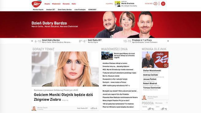 Na nowej stronie użytkownicy znajdą m.in. różnorodne wiadomości muzyczne, informacje rozrywkowe oraz najważniejsze wiadomości z kraju i ze świata. Na bieżąco podawane są informacje, o tym co dzieje się na antenie Radia ZET, a także o projektach specjalnych rozgłośni, eventach, koncertach czy konkursach. Każdy z programów stacji ma dedykowaną podstronę z materiałami wideo, zdjęciami, informacjami o prowadzących czy najciekawszymi fragmentami audycji radiowych.