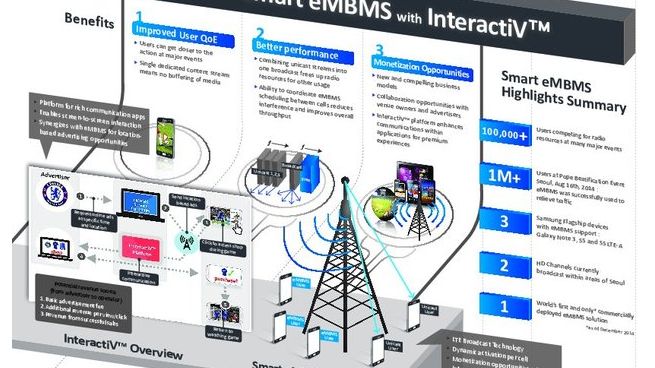 Smart eMBMS wykorzystuje dynamiczny algorytm aktywacji komórek, który wykrywa, gdy wielu użytkowników w komórce przesyła te same treści wideo w trybie transmisji pojedynczej. Kiedy ich liczba osiągnie określoną wartość progową w danej komórce, jej eMBMS aktywuje się, przełączając użytkowników w sposób automatyczny i płynny na strumień transmisji. W ten sposób zwalnia się krytyczne zasoby widma dla innych osób w ramach komórki i zapewnia każdemu z użytkowników dostęp do materiałów wideo tej samej, wysokiej jakości bez potrzeby konkurowania z innymi o zasoby sieciowe.