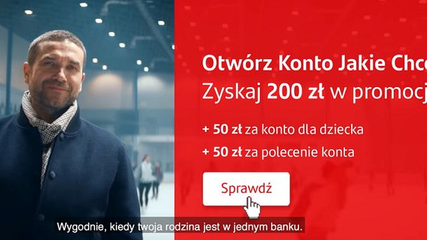 W akcji reklamowane są promocje dotyczące Konta Jakie Chcę w Santander Bank Polska: 50 zł za założenie rachunku w wersji z opcją dla dziecka i 50 zł za skuteczne polecenie konta. Obie oferty będą obowiązywały do końca października.