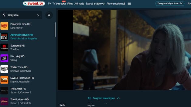Platforma Sweet.TV niemal co tydzień dodaje do oferty nowe kanały FAST, czyli bezpłatne stacje w streamingu, które emitują reklamy. W ofercie platformy za darmo obejrzymy też TVP1, TVP2, TVP3, 16 wersji TVP3, ukraiński Espresso TV i turecki TRT World HD.