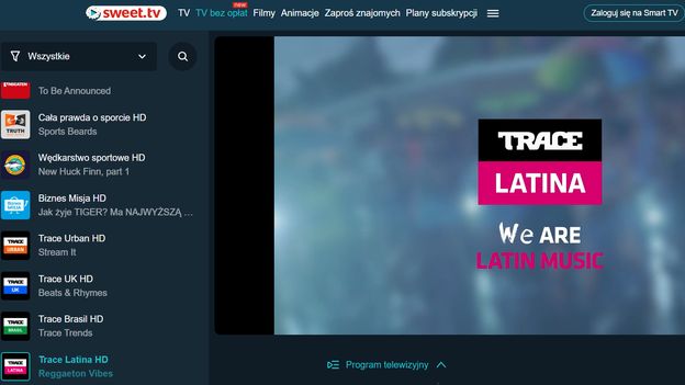 Do oglądania darmowych kanałów muzycznych Trace w Sweet.TV konieczne jest założenie konta na stronie serwisu streamingowego. Stacje można oglądać przez przeglądarkę internetową, aplikację mobilną i na urządzeniach Smart TV. Sweet.TV oferuje stacje w modelu FAST, więc mogą być przerywane reklamami lub materiałami autopromocyjnymi platformy.