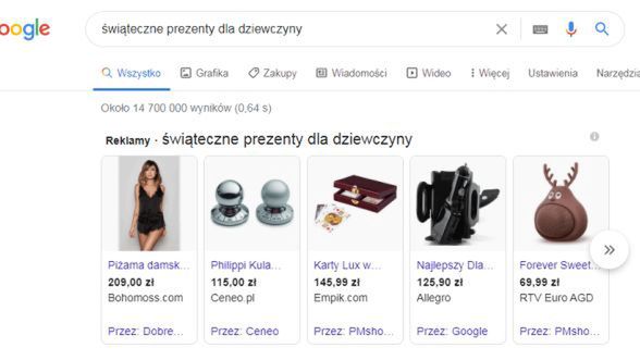 Google zaznacza, że jak co roku szukamy głównie inspiracji na podarunki dla najbliższych lub naszych ukochanych: hasła „Świąteczne prezenty dla dziewczyny” i „Co kupić dziewczynie na święta” oraz „Prezenty na święta dla dziewczyny” wpisywane były odpowiednio o 338, 299 i 286 proc. częściej.