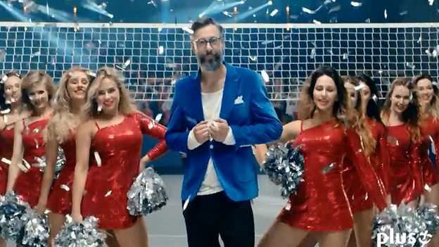 Szymon Majewski z siatkarskimi chearleaderkami reklamuje rejestrowanie numerów na kartę w Plusie (wideo)