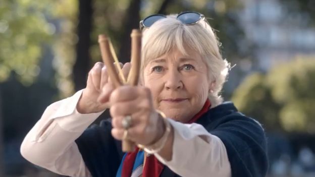 Spot z kampanii pokazuje, jak dwóch mężczyzn obserwuje staruszkę siedzącą w parku na ławce. Nieoczekiwanie kobieta wyjmuje procę i wystrzeliwuje drażetkę Tic Tac, którą łapie jej koleżanka siedząca nieopodal.