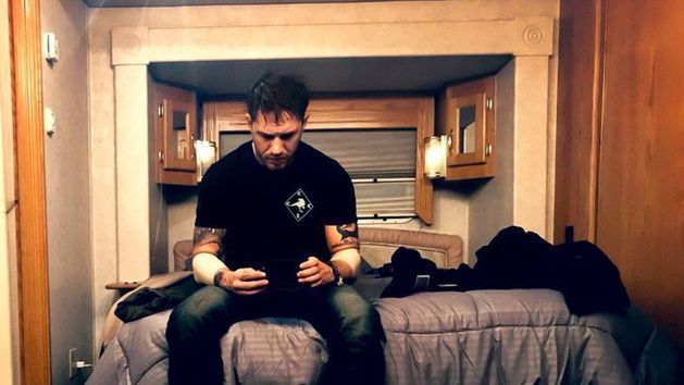 Na fotce widzimy Hardy'ego w roli Eddiego Brocka, który później staje się tytułowym Venomem. Zdjęcie znajduje się na twitterowym koncie komiksowej produkcji.