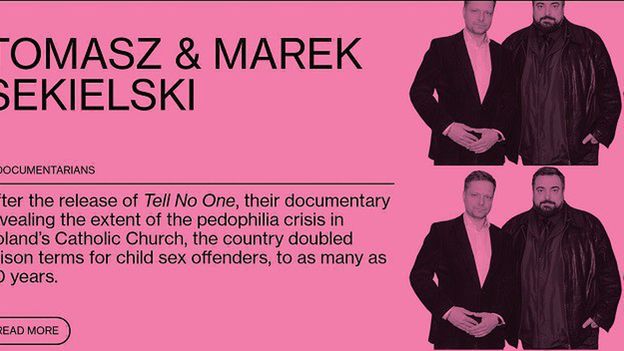 - Po realizacji „Tylko nie mów nikomu” (ang. „Tell No One”), filmu dokumentalnego ujawniającego skalę kryzysu pedofilii w polskim Kościele katolickim, kraj podwoił kary więzienia dla tych, którzy popełnili przestępstwo seksualne z udziałem dzieci, nawet do 30 lat - uzasadniono na stronie Bloomberga.