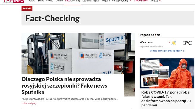 W portalu TVP.Info uruchomiono osobną podstronę „Fact-checking” (z ang. sprawdzanie faktów) już w 2020 roku, do tej pory głównie skupiano się na newsach dotyczących koronawirusa.