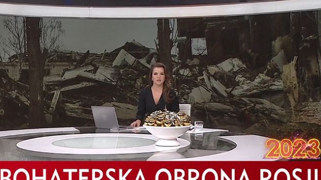 Fraza „Bohaterska obrona Rosji” pojawiła się na pasku w TVP Info, gdy prowadząca serwis Urszula Sokołowska podawała wiadomości o zmianie taktyki działań rosyjskiej armii na terenie Ukrainy.