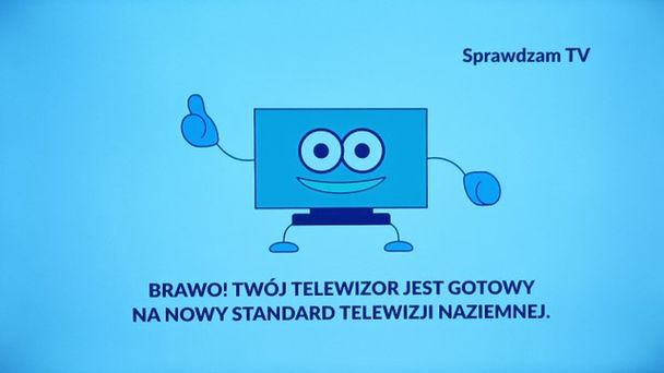 Sprawdzam TV pojawił się w MUX-3 naziemnej telewizji cyfrowej pod koniec grudnia ub.r. - Szanowny widzu, nadchodzi zmiana standardu telewizji naziemnej. Będzie więcej programów w lepszej jakości obrazu i dźwięku. Widzisz obraz i słyszysz dźwięk? Twój odbiornik jest gotowy na nowy standard. W innym przypadku dokup nowy tuner lub wymień telewizor na nowy DVB-T2 z kodekiem HEVC. Więcej informacji na telewizjanaziemna.pl - informował lektor. Stronę pod wspomnianym wcześniej adresem kilka miesięcy temu uruchomiła TVP.