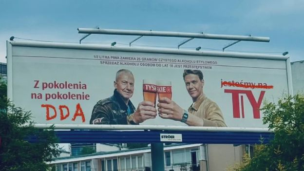 Oburzona reklamą piwa Tyskie z Bogusławem Lindą i Jakubem Gierszałem i hasłem „Z pokolenia na pokolenie jesteśmy na Ty”, Gabriela Głażewska-Dudek, koordynatorka ds komunikacji w Veolia Energia Warszawa opublikowała na LinkedIn przerobione graficznie zdjęcie billboardu z tej kampanii. Przekreśliła na nim słowo „jesteśmy”, a pod słowami „z pokolenia na pokolenie” dopisała skrót DDA [pochodzi od określenia Dorosłe Dzieci Alkoholików – przyp. red.].