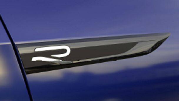 Ma ono stałą szerokość linii i poziomy układ z krzywiznami, które dodają mu dynamiki. Klaus Bischoff, szef designu Volkswagena, powiedział: - R oznacza sportowe atrybuty naszych wybranych modeli. Logo R świadczy o zarówno estetyce, jak i sportowym charakterze samochodu. Teraz zyskało ono tak na przejrzystości, jak i na charyzmie. Podobnie jak nowe logo marki Volkswagen”.