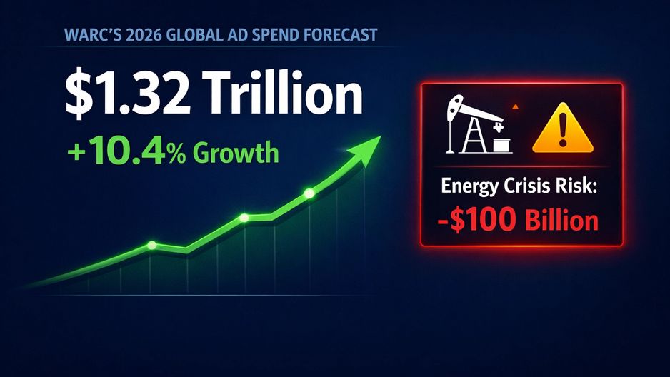 Globalny rynek reklamy ma rosnąć szybciej, niż zakładano w grudniu: w 2026 r. wydatki mają wzrosnąć o 10,4 proc. do 1,32 bln dol. — wynika z nowych danych WARC. Jednocześnie analitycy ostrzegają, że kryzys energetyczny związany z wojną Iranu może obniżyć dynamikę nawet o kilka punktów proc. i zdjąć z rynku dziesiątki miliardów dolarów.