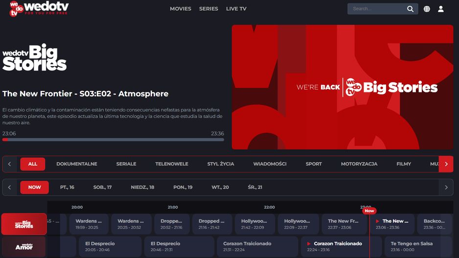 Platforma wedotv jest dostępna także w Polsce m.in. za pośrednictwem przeglądarki internetowej komputera i aplikacji na telewizory Smart TV z Android TV, ale oferuje głównie kanały FAST w języku angielskim i hiszpańskim. To m.in. stacje wedotv Big Stories, wedotv Amor, MotorVision, Travel, Food, Game, Trend. Za pośrednictwem platformy Rakuten TV można oglądać motoryzacyjny kanał wedotv Auta po polsku.