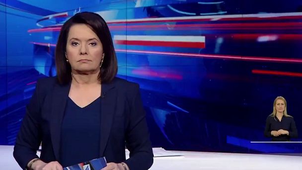 Danuta Holecka w studiu "Wiadomości", fot. TVP